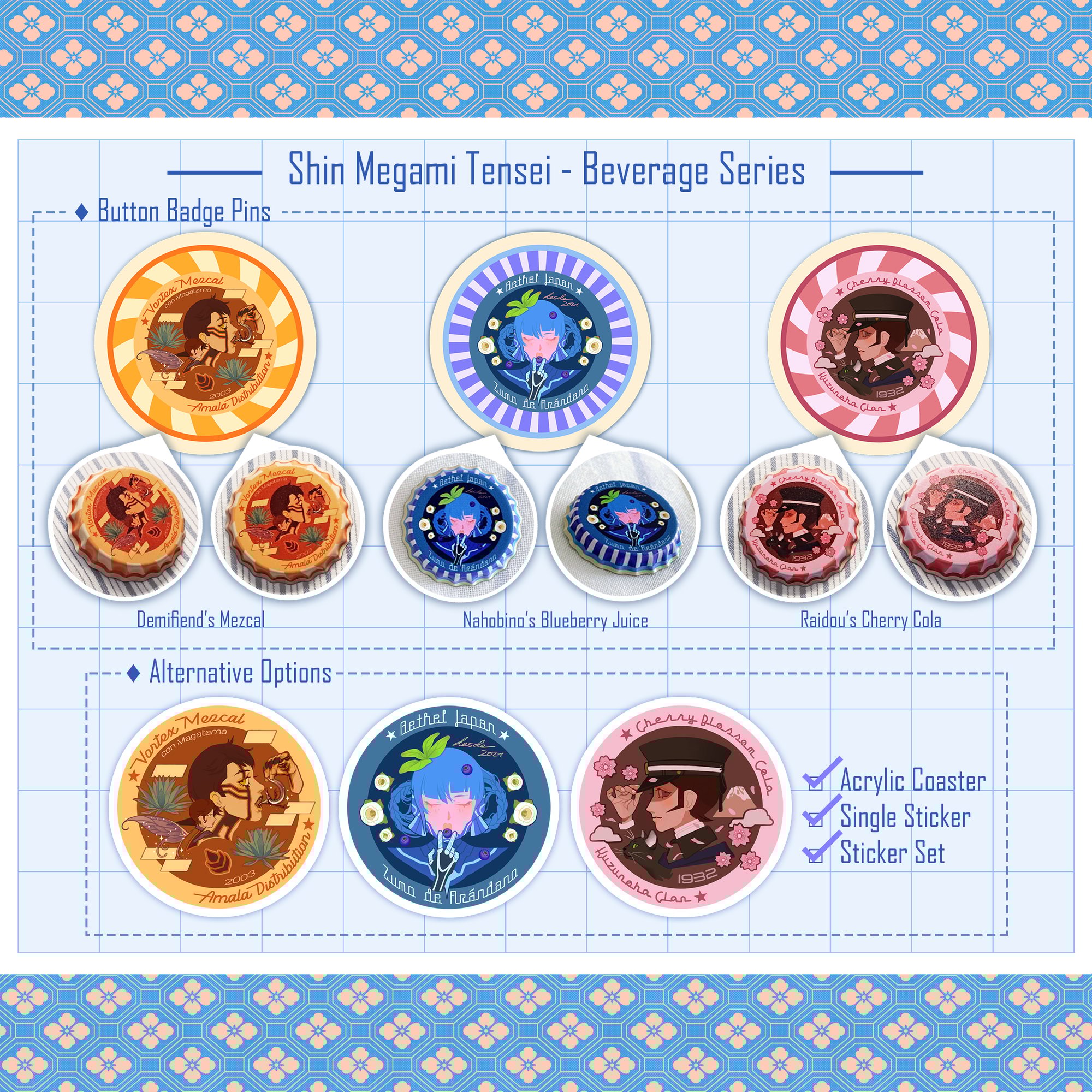 Fan-made merchandising set based on the following titles from the videogame series Shin Megami Tensei: